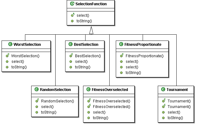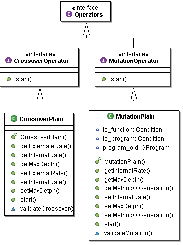 E' possibile perciò aggiugere nuove implementazioni degli operatori genetici semplicemente implementado la relativa interfaccia.